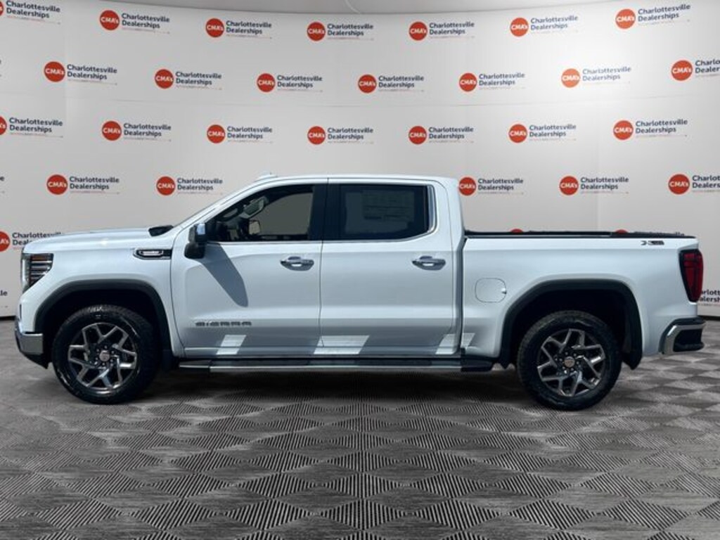 Glacier White Tricoat 2026 GMC Sierra 1500 SLT 4WD 10-Speed Automatic 3.0L I6 10-Speed Automatic, 4WD, Jet Black w/Leather-Appointed Seat Trim, 10-Way Power Driver Seat Adjuster with Lumbar, 10-Way Power Passenger Seat Adjuster with Lumbar, 120-Volt Bed Mounted Power Outlet, 120-Volt Interior Power Outlet, 170 Amp Alternator, 2 Charge/Data USB Ports, 2 Charge/Data USB Ports Inside Center Console, 2 Type-C Charge-Only Rear USB Ports, 20" Polished Aluminum Wheels, 3.23 Rear Axle Ratio, 4-Wheel Disc Brakes, 6 Speakers, 6-Speaker Audio System Feature, ABS brakes, Adaptive Cruise Control, Air Conditioning, Alloy wheels, AM/FM radio: SiriusXM with 360L, Apple CarPlay/Android Auto, Auto High-beam Headlights, Auto-dimming door mirrors, Auto-dimming Rear-View mirror, Auto-Locking Rear Differential, Automatic Emergency Braking, Automatic temperature control, Auxiliary External Transmission Oil Cooler, Brake assist, Buckle to Drive, Bumpers: chrome, Chrome Header and Chrome Grille Insert Bars, Chrome Wheel to Wheel Assist Steps, Color-Keyed Carpeting Floor Covering, Compass, Deep-Tinted Glass, Delay-off headlights, Driver door bin, Driver Memory, Driver vanity mirror, Dual Exhaust System, Dual front impact airbags, Dual front side impact airbags, Electric Rear-Window Defogger, Electronic Precision Shift, Electronic Stability Control, Emergency communication system: OnStar, Floor-Mounted Center Console, Following Distance Indicator, Forward Collision Alert, Front 40/20/40 Split-Bench Seat, Front anti-roll bar, Front Bucket Seats, Front Center Armrest w/Storage, Front dual zone A/C, Front fog lights, Front Frame-Mounted Black Recovery Hooks, Front Pedestrian Braking, Front Rain-Sensing Wipers, Front reading lights, Front wheel independent suspension, Fully automatic headlights, HD Rear Vision Camera, HD Surround Vision, Heated 2nd Row Outboard Seats, Heated door mirrors, Heated Driver and Front Outboard Passenger Seating, Heated front seats, Heated steering wheel, Heavy-Duty Air Filter, High Capacity Suspension Package, Hill Descent Control, Hitch Guidance, Hitch View, Illuminated entry, in-Vehicle Trailering System App, Integrated Trailer Brake Controller, IntelliBeam Automatic High Beam on/Off, Keyless Open and Start, Lane Keep Assist with Lane Departure Warning, LED Cargo Area Lighting, Low tire pressure warning, Manual Tilt-Wheel and Telescoping Steering Column, Memory seat, Navigation System, Occupant sensing airbag, Off-Road Suspension, OnStar Services Capable, Outside temperature display, Overhead airbag, Overhead console, Panic alarm, Passenger door bin, Passenger vanity mirror, Perforated Leather-Appointed Front Outboard Seat Trim, Perimeter Lighting, Power Door Locks, Power door mirrors, Power driver seat, Power Front Passenger Windows with Express Up/Down, Power Front Windows with Driver Express Up/Down, Power passenger seat, Power Rake and Telescoping Steering Column, Power Rear Windows with Express Down, Power Sliding Rear Window with Rear Defogger, Power steering, Power Sunroof, Power windows, Premium Bose 7-Speaker Sound System, ProGrade Trailering System, Push Button Start, Radio data system, Radio: Premium GMC Infotainment Audio System, Rain sensing wipers, Rear Cross Traffic Braking, Rear Pedestrian Detection, Rear reading lights, Rear seat center armrest, Rear step bumper, Rear Wheelhouse Liners, Rear window defroster, Remote keyless entry, Remote Vehicle Starter System, Safety Alert Seat, Security system, Sierra Safety Plus Package, SiriusXM with 360L Trial Subscription, SLT Convenience Package, SLT Preferred Package, SLT Premium Package, Speed control, Speed-sensing steering, Split folding rear seat, Standard Suspension Package, Steering Wheel Audio Controls, Steering wheel mounted audio controls, Tachometer, Telescoping steering wheel, Theft Deterrent System (unauthorized Entry), Tilt steering wheel, Traction control, Trailer Camera Provisions, Trailer Side Blind Zone Alert, Trailering Package, Trip computer, Ultra