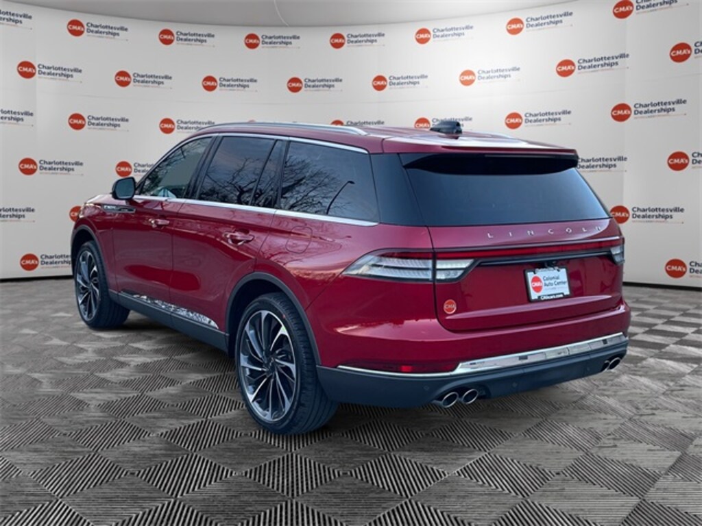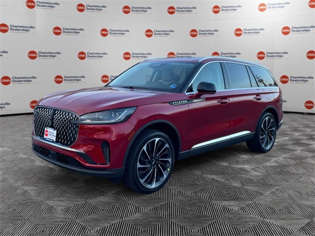 Red Carpet Tinted Clearcoat 2026 Lincoln Aviator Reserve AWD 10-Speed Automatic 3.0L V6 14 Speakers, 30-Way Perfect Position Seats with Active Motion, 3rd row seats: split-bench, 4-Wheel Disc Brakes, 40/Mini Console/40 Dual Captain's Chairs, ABS brakes, Adaptive Dynamic Bending Lighting, Adaptive Pixel LED Headlamps, Adaptive suspension, Advanced Heads-Up Display, Air Conditioning, All-Weather 1st and 2nd Row Floor Liners, Alloy wheels, AM/FM radio: SiriusXM, Apple CarPlay/Android Auto, Audio memory, Auto Air Refresh, Auto Heated and Ventilated Driver and Passenger Seats, Auto High-beam Headlights, Auto-dimming door mirrors, Auto-dimming Rear-View mirror, Automatic temperature control, Brake assist, Bumpers: body-color, Compass, Delay-off headlights, Driver door bin, Driver vanity mirror, Dual front impact airbags, Dual front side impact airbags, Electronic Stability Control, Emergency communication system: 911 Assist, Equipment Group 200A Reserve I, Four wheel independent suspension, Front anti-roll bar, Front Bucket Seats, Front Center Armrest, Front dual zone A/C, Front License Plate Bracket, Front reading lights, Fully automatic headlights, Garage door transmitter, Genuine wood console insert, Genuine wood dashboard insert, Heads-Up Display, Heated and Ventilated Rear Seats, Heated door mirrors, Heated front seats, Heated steering wheel, HVAC memory, Illuminated entry, Illuminated Lincoln Star in Grille, Illumination Package, Knee airbag, Leather steering wheel, Lincoln App, Lincoln BlueCruise Equipped (4-Years Included), Lincoln Connectivity Package (4-Years), Lincoln Digital Experience, Lincoln Dynamic Signature Lighting, Low tire pressure warning, Luxury Package, Memory seat, Navigation system: Google Maps, Occupant sensing airbag, Outside temperature display, Overhead airbag, Overhead console, Panic alarm, Passenger door bin, Passenger vanity mirror, Power door mirrors, Power driver seat, Power Liftgate, Power moonroof: Panoramic Vista Roof, Power passenger seat, Power steering, Power windows, Premium Leather Front Captain's Chairs, Radio data system, Radio: Revel Audio System with 14 Speakers, Radio: Revel Ultima 3D Audio System with 28 Speakers, Rain sensing wipers, Rear air conditioning, Rear anti-roll bar, Rear audio controls, Rear dual zone A/C, Rear reading lights, Rear window defroster, Rear window wiper, Remote keyless entry, Security system, SiriusXM, Speed control, Speed Dependent Lighting, Speed-Sensitive Wipers, Split folding rear seat, Spoiler, Steering wheel memory, Steering wheel mounted A/C controls, Steering wheel mounted audio controls, Tachometer, Telescoping steering wheel, Tilt steering wheel, Traction control, Trip computer, Turn signal indicator mirrors, Variably intermittent wipers, Ventilated front seats, Wheels: 21" Bright-Machined Aluminum with Dark Alloy Painted Pockets, Wheels: 22" Bright-Machined Aluminum with Magnetic Painted Pockets, Wireless Charging Pad.