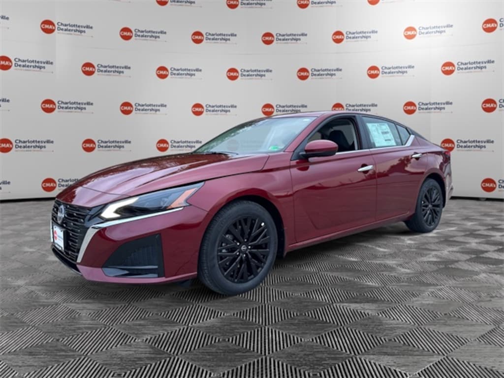 Scarlet Ember 2025 Nissan Altima 2.5 SV FWD CVT with Xtronic 2.5L 4-Cylinder DOHC 16V CVT with Xtronic, 17" Machined Alloy Wheels, 4-Wheel Disc Brakes, 6 Speakers, ABS brakes, Air Conditioning, Alloy wheels, AM/FM radio: SiriusXM, Auto High-beam Headlights, Blind Spot Warning, Body-Color Outside Mirrors, Body-Colored Splash Guards, Brake assist, Bumpers: body-color, Carbon Fiber Look Center Console Finisher, Cloth Seat Trim, Delay-off headlights, Driver door bin, Driver vanity mirror, Dual front impact airbags, Dual front side impact airbags, Dual Zone Automatic HVAC, Electronic Stability Control, Floor Mats/Trunk Mat/Hideaway Net, Four wheel independent suspension, Front anti-roll bar, Front Bucket Seats, Front Center Armrest, Front reading lights, Fully automatic headlights, Illuminated entry, Knee airbag, Low tire pressure warning, NissanConnect, NissanConnect featuring Apple CarPlay and Android Auto, Occupant sensing airbag, Outside temperature display, Overhead airbag, Overhead console, Panic alarm, Passenger door bin, Passenger vanity mirror, Power door mirrors, Power driver seat, Power steering, Power windows, Premium Paint, Radio data system, Radio: AM/FM Audio System, Rear anti-roll bar, Rear Parking Sensors, Rear reading lights, Rear seat center armrest, Rear side impact airbag, Rear Spoiler (Accessory Part), Rear window defroster, Remote Engine Start w/Intelligent Climate Control, Remote keyless entry, Security system, Single Panel Moonroof, Speed control, Speed-sensing steering, Speed-Sensitive Wipers, Split folding rear seat, Steering wheel mounted audio controls, SV Special Edition Package, Tachometer, Telescoping steering wheel, Tilt steering wheel, Traction control, Trip computer, Trunk Organizer Tray, USB Charging Cable Set - Nissan, Variably intermittent wipers, Visible Rear Exhaust w/Finisher, Wheels: 17" Gloss Black Alloy, CVT with Xtronic.