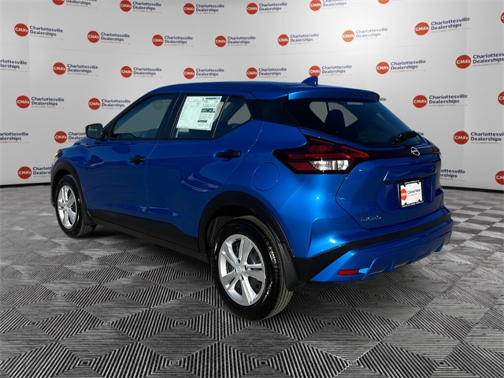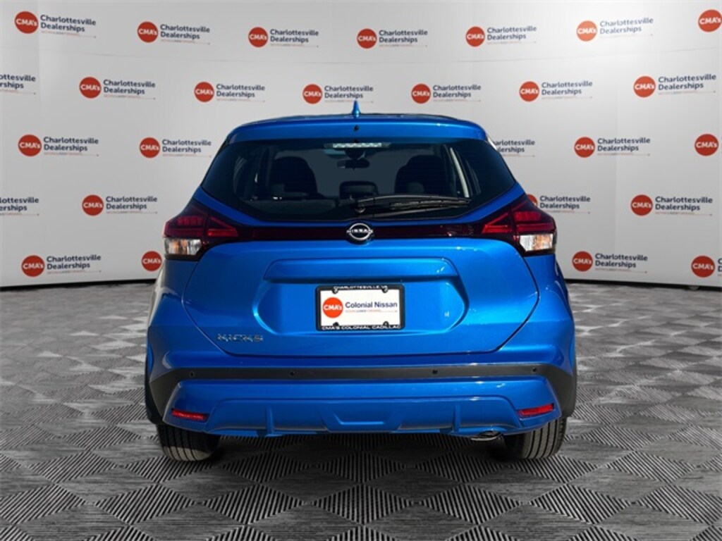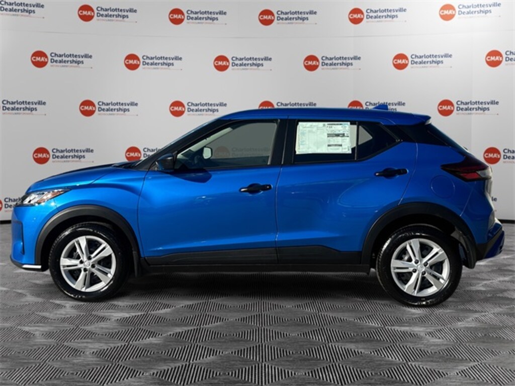 Electric Blue Metallic 2025 Nissan Kicks Play S FWD CVT with Xtronic 1.6L 4-Cylinder DOHC 16V 16" Steel Wheels w/Full Covers, 6 Speakers, ABS brakes, Air Conditioning, AM/FM radio, Apple CarPlay/Android Auto, Auto High-beam Headlights, Blind Spot Warning, Brake assist, Bumpers: body-color, Carpeted Floor Mats w/Cargo Mat, Center Armrest w/Storage, Cloth Seat Trim w/Single Stitch, Driver door bin, Driver vanity mirror, Driver's Seat Mounted Armrest, Dual front impact airbags, Dual front side impact airbags, Electronic Stability Control, Front anti-roll bar, Front Bucket Seats, Front reading lights, Front wheel independent suspension, Fully automatic headlights, Illuminated entry, Knee airbag, Low tire pressure warning, Occupant sensing airbag, Outside temperature display, Overhead airbag, Panic alarm, Passenger door bin, Passenger vanity mirror, Power door mirrors, Power steering, Power windows, Radio data system, Radio: AM/FM Audio System, Rear Parking Sensors, Rear reading lights, Rear side impact airbag, Rear window defroster, Rear window wiper, Remote keyless entry, Speed control, Splash Guards Grain (4 Piece), Split folding rear seat, Sport steering wheel, Steering wheel mounted audio controls, Tachometer, Telescoping steering wheel, Tilt steering wheel, Traction control, Trip computer, Variably intermittent wipers.