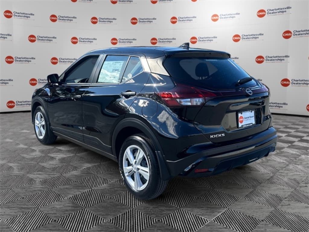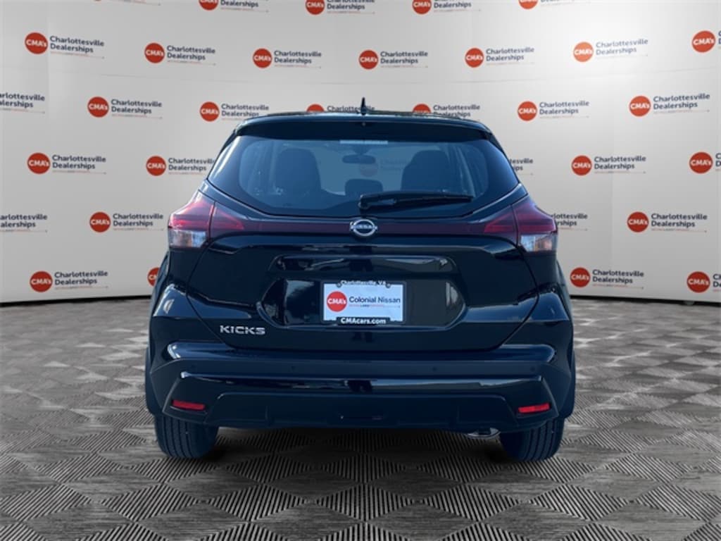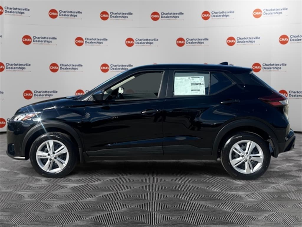 Super Black 2025 Nissan Kicks Play S FWD CVT with Xtronic 1.6L 4-Cylinder DOHC 16V 16" Steel Wheels w/Full Covers, 6 Speakers, ABS brakes, Air Conditioning, AM/FM radio, Apple CarPlay/Android Auto, Auto High-beam Headlights, Blind Spot Warning, Brake assist, Bumpers: body-color, Carpeted Floor Mats w/Cargo Mat, Center Armrest w/Storage, Cloth Seat Trim w/Single Stitch, Driver door bin, Driver vanity mirror, Driver's Seat Mounted Armrest, Dual front impact airbags, Dual front side impact airbags, Electronic Stability Control, Front anti-roll bar, Front Bucket Seats, Front reading lights, Front wheel independent suspension, Fully automatic headlights, Illuminated entry, Knee airbag, Low tire pressure warning, Occupant sensing airbag, Outside temperature display, Overhead airbag, Panic alarm, Passenger door bin, Passenger vanity mirror, Power door mirrors, Power steering, Power windows, Radio data system, Radio: AM/FM Audio System, Rear Parking Sensors, Rear reading lights, Rear side impact airbag, Rear window defroster, Rear window wiper, Remote keyless entry, Speed control, Splash Guards Grain (4 Piece), Split folding rear seat, Sport steering wheel, Steering wheel mounted audio controls, Tachometer, Telescoping steering wheel, Tilt steering wheel, Traction control, Trip computer, Variably intermittent wipers.