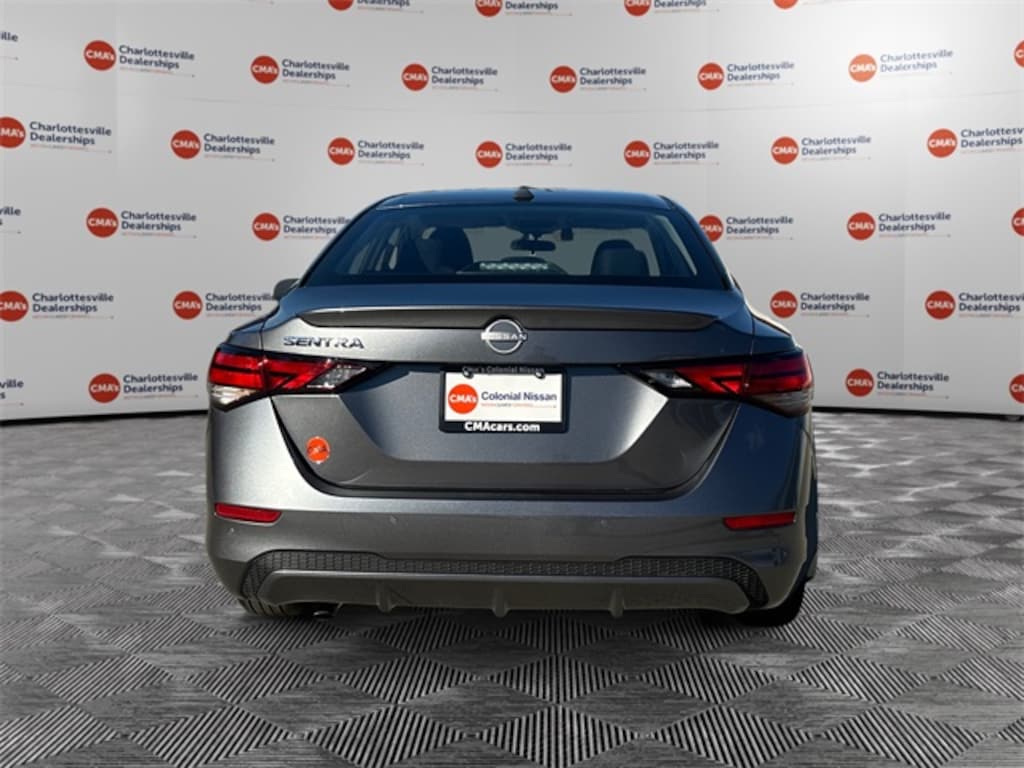 Gun Metallic 2025 Nissan Sentra SV FWD CVT with Xtronic 2.0L I4 DOHC CVT with Xtronic, Charcoal Cloth, 16" Alloy Wheels, 4-Wheel Disc Brakes, 8 Speakers, ABS brakes, Air Conditioning, All-Weather Package, Alloy wheels, AM/FM radio: SiriusXM, Auto High-beam Headlights, Blind Spot Warning, Body Colored Splash Guards (4-Piece), Brake assist, Bumpers: body-color, Carpeted Floor Mats w/Trunk Mat, Clear Rear Bumper Protector, Dash Cam - Dual Camera Drive Recorder, Delay-off headlights, Door Sill Plates, Driver door bin, Driver vanity mirror, Dual front impact airbags, Dual front side impact airbags, Dual Zone Auto Climate Control, Electronic Stability Control, Four wheel independent suspension, Front anti-roll bar, Front Bucket Seats, Front Center Armrest, Front reading lights, Fully automatic headlights, Heated Exterior Mirrors, Heated Front Seats, Illuminated entry, Knee airbag, Leather-Wrapped Heated Steering Wheel, Low tire pressure warning, Nissan Connect Services, Nissan USB Charging Cable Set, NissanConnect featuring Apple CarPlay and Android Auto, NissanConnect Services, Occupant sensing airbag, Outside temperature display, Overhead airbag, Overhead console, Panic alarm, Passenger door bin, Passenger vanity mirror, Power door mirrors, Power steering, Power windows, Radio data system, Radio: AM/FM w/RDS/MP3/Aux-In, Rear anti-roll bar, Rear Parking Sensors, Rear side impact airbag, Rear Spoiler, Rear window defroster, Remote Engine Start, Remote keyless entry, Security system, Speed control, Speed-sensing steering, Split folding rear seat, Steering wheel mounted audio controls, Tachometer, Telescoping steering wheel, Tilt steering wheel, Traction control, Trip computer, Upgraded Cloth Seat Trim, Variably intermittent wipers, Wi-Fi Hotspot, CVT with Xtronic, Charcoal Cloth.