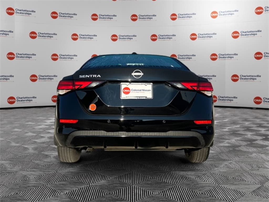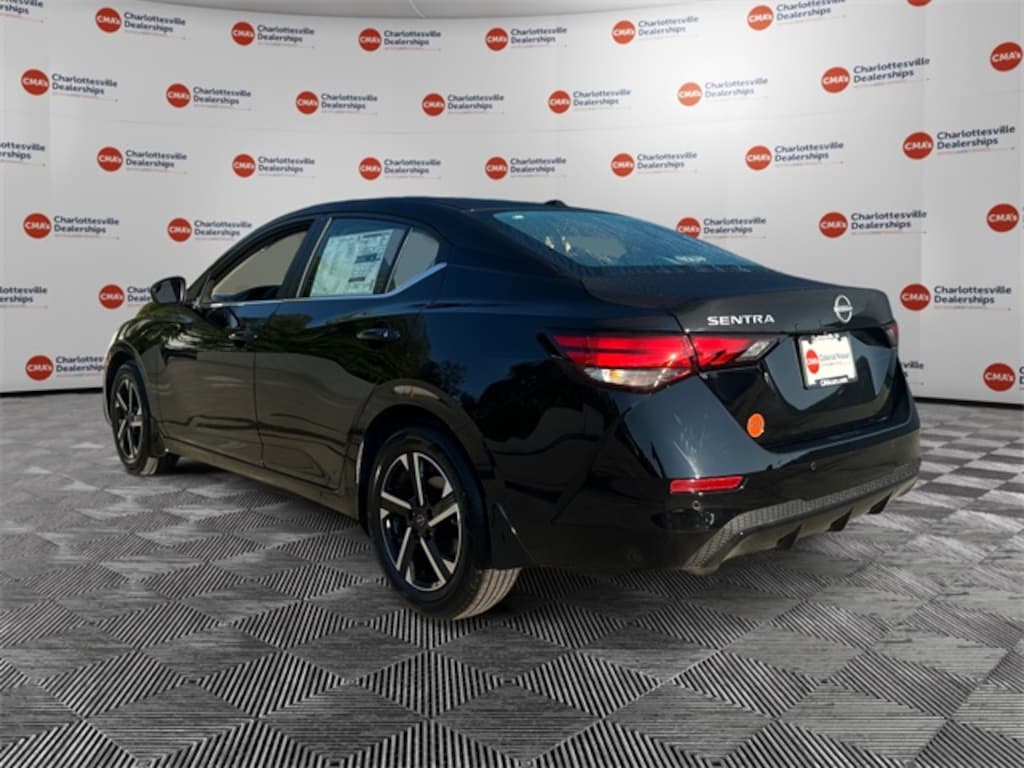 Super Black 2025 Nissan Sentra SV FWD CVT with Xtronic 2.0L I4 DOHC CVT with Xtronic, Charcoal Cloth, 16" Alloy Wheels, 4-Wheel Disc Brakes, 8 Speakers, ABS brakes, Air Conditioning, All-Weather Package, Alloy wheels, AM/FM radio: SiriusXM, Auto High-beam Headlights, Blind Spot Warning, Body Colored Splash Guards (4-Piece), Brake assist, Bumpers: body-color, Carpeted Floor Mats w/Trunk Mat, Clear Rear Bumper Protector, Delay-off headlights, Door Sill Plates, Driver door bin, Driver vanity mirror, Dual front impact airbags, Dual front side impact airbags, Dual Zone Auto Climate Control, Electronic Stability Control, Four wheel independent suspension, Front anti-roll bar, Front Bucket Seats, Front Center Armrest, Front reading lights, Fully automatic headlights, Heated Exterior Mirrors, Heated Front Seats, Illuminated entry, Knee airbag, Leather-Wrapped Heated Steering Wheel, Low tire pressure warning, Nissan Connect Services, NissanConnect featuring Apple CarPlay and Android Auto, NissanConnect Services, Occupant sensing airbag, Outside temperature display, Overhead airbag, Overhead console, Panic alarm, Passenger door bin, Passenger vanity mirror, Power door mirrors, Power steering, Power windows, Radio data system, Radio: AM/FM w/RDS/MP3/Aux-In, Rear anti-roll bar, Rear Parking Sensors, Rear side impact airbag, Rear window defroster, Remote Engine Start, Remote keyless entry, Security system, Speed control, Speed-sensing steering, Split folding rear seat, Steering wheel mounted audio controls, Tachometer, Telescoping steering wheel, Tilt steering wheel, Traction control, Trip computer, Upgraded Cloth Seat Trim, Variably intermittent wipers, Wi-Fi Hotspot, CVT with Xtronic, Charcoal Cloth.