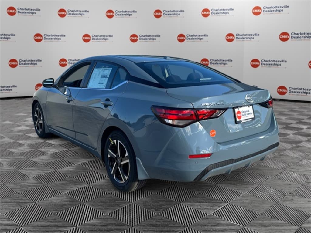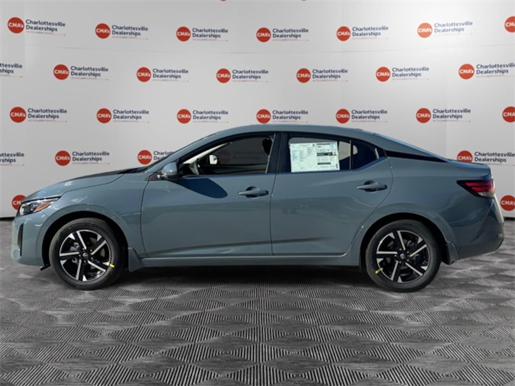 Atlantic Gray Metallic 2025 Nissan Sentra SV FWD CVT with Xtronic 2.0L I4 DOHC CVT with Xtronic, Charcoal Cloth, 16" Alloy Wheels, 4-Wheel Disc Brakes, 8 Speakers, ABS brakes, Air Conditioning, All-Weather Package, Alloy wheels, AM/FM radio: SiriusXM, Auto High-beam Headlights, Blind Spot Warning, Body Colored Splash Guards (4-Piece), Brake assist, Bumpers: body-color, Carpeted Floor Mats w/Trunk Mat, Clear Rear Bumper Protector, Delay-off headlights, Door Sill Plates, Driver door bin, Driver vanity mirror, Dual front impact airbags, Dual front side impact airbags, Dual Zone Auto Climate Control, Electronic Stability Control, Four wheel independent suspension, Front anti-roll bar, Front Bucket Seats, Front Center Armrest, Front reading lights, Fully automatic headlights, Heated Exterior Mirrors, Heated Front Seats, Illuminated entry, Knee airbag, Leather-Wrapped Heated Steering Wheel, Low tire pressure warning, Nissan Connect Services, NissanConnect featuring Apple CarPlay and Android Auto, NissanConnect Services, Occupant sensing airbag, Outside temperature display, Overhead airbag, Overhead console, Panic alarm, Passenger door bin, Passenger vanity mirror, Power door mirrors, Power steering, Power windows, Premium Paint, Radio data system, Radio: AM/FM w/RDS/MP3/Aux-In, Rear anti-roll bar, Rear Parking Sensors, Rear side impact airbag, Rear window defroster, Remote Engine Start, Remote keyless entry, Security system, Speed control, Speed-sensing steering, Split folding rear seat, Steering wheel mounted audio controls, Tachometer, Telescoping steering wheel, Tilt steering wheel, Traction control, Trip computer, Upgraded Cloth Seat Trim, Variably intermittent wipers, Wi-Fi Hotspot, CVT with Xtronic, Charcoal Cloth.