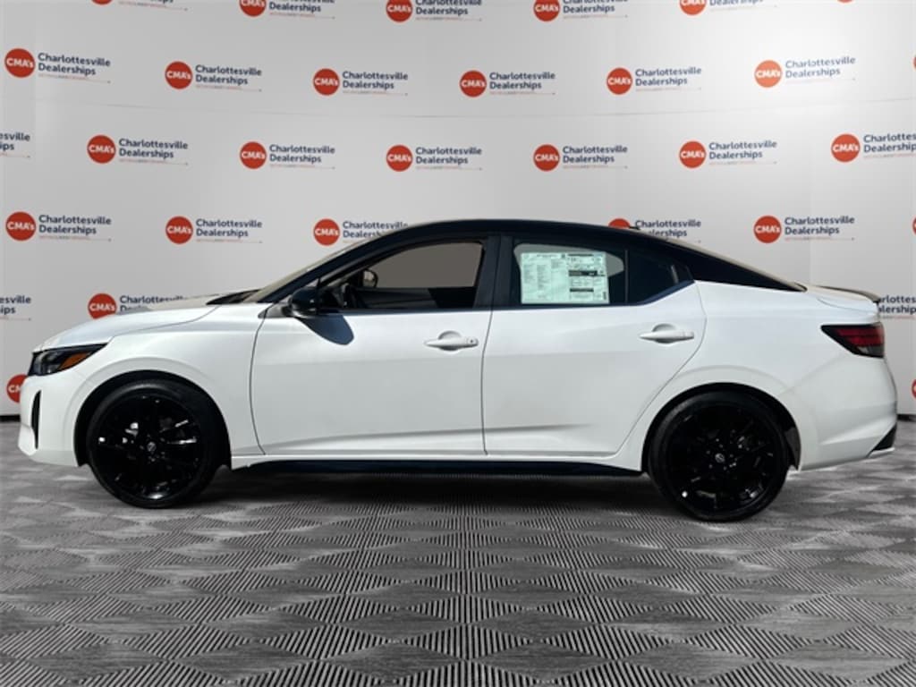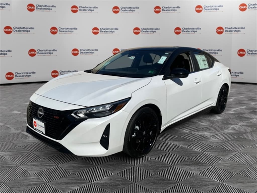 Aspen White Tricoat/Super Black 2025 Nissan Sentra SR FWD CVT with Xtronic 2.0L I4 DOHC CVT with Xtronic, Sport Cloth, 18" Alloy Wheels, 18" Black Alloy Wheels, 2-Tone Premium Paint, 4-Wheel Disc Brakes, 8 Speakers, ABS brakes, Air Conditioning, Alloy wheels, AM/FM radio: SiriusXM, Auto High-beam Headlights, Automatic temperature control, Black Exterior Badging, Black Painted V-Motion Grille, Blind Spot Warning, Brake assist, Bumpers: body-color, Carpeted Floor Mats w/Trunk Mat, Clear Rear Bumper Protector, Dash Cam - Dual Camera Drive Recorder, Delay-off headlights, Door Sill Plates, Driver door bin, Driver vanity mirror, Dual front impact airbags, Dual front side impact airbags, Electronic Stability Control, Four wheel independent suspension, Front anti-roll bar, Front Bucket Seats, Front Center Armrest, Front dual zone A/C, Front reading lights, Fully automatic headlights, Heated door mirrors, Heated Front Bucket Seats, Heated front seats, Illuminated entry, Knee airbag, Leather Shift Knob, Low tire pressure warning, Midnight Edition, NissanConnect featuring Apple CarPlay and Android Auto, Occupant sensing airbag, Outside temperature display, Overhead airbag, Overhead console, Panic alarm, Passenger door bin, Passenger vanity mirror, Power door mirrors, Power steering, Power windows, Radio data system, Radio: AM/FM w/RDS/MP3/Aux-In, Rear anti-roll bar, Rear Parking Sensors, Rear seat center armrest, Rear side impact airbag, Rear Spoiler, Rear window defroster, Remote keyless entry, Security system, Side Sills, Speed control, Speed-sensing steering, Split folding rear seat, Spoiler, Sport Cloth Seat Trim, Steering wheel mounted audio controls, Tachometer, Telescoping steering wheel, Tilt steering wheel, Traction control, Trip computer, Turn signal indicator mirrors, Variably intermittent wipers, CVT with Xtronic, Sport Cloth.