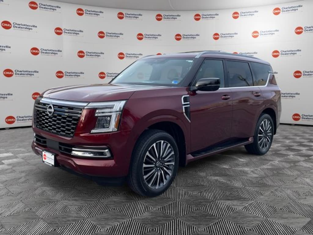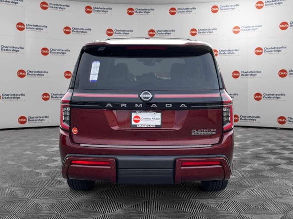 Coulis Red Pearl 2026 Nissan Armada Platinum Reserve 4WD 9-Speed Automatic 3.5L DOHC 4WD, 12 Speakers, 2nd-Row Split Bench Seat w/40/20/40-Split Folding, 3rd row seats: split-bench, 4-Wheel Disc Brakes, ABS brakes, Adaptive suspension, Air Conditioning, Alloy wheels, AM/FM radio: SiriusXM w/360L, Anti-whiplash front head restraints, Apple CarPlay/Android Auto, Auto High-beam Headlights, Auto tilt-away steering wheel, Auto-dimming door mirrors, Auto-dimming Rear-View mirror, Auto-leveling suspension, Automatic temperature control, Brake assist, Bumpers: body-color, Carpeted Floor Mats with Bench Seat, Center Armrest with Two Cupholders, Climate Controlled Heated and Ventilated Front Seats, Compass, Cross Bars, Delay-off headlights, Driver door bin, Driver vanity mirror, Dual front impact airbags, Dual front side impact airbags, Electronic Stability Control, Emergency communication system: NissanConnect Services, EZ Flex Second Row Seating System with One Touch Release, Four wheel independent suspension, Front anti-roll bar, Front Bucket Seats, Front Center Armrest, Front dual zone A/C, Front fog lights, Front reading lights, Fully automatic headlights, Garage door transmitter: HomeLink, Genuine wood dashboard insert, Heads-Up Display, Heated door mirrors, Heated front seats, Heated rear seats, Heated steering wheel, HVAC memory, Illuminated entry, Illuminated Kick Plates, Knee airbag, Leather steering wheel, Low tire pressure warning, Memory seat, Navigation system: Google Maps, Occupant sensing airbag, Outside temperature display, Overhead airbag, Overhead console, Panic alarm, Passenger door bin, Passenger vanity mirror, Power door mirrors, Power driver seat, Power Liftgate, Power moonroof, Power passenger seat, Power steering, Power windows, Premium Paint, Quilted Leather Seat Trim, Radio: NissanConnect with SiriusXM 360L, Rain sensing wipers, Rear air conditioning, Rear anti-roll bar, Rear Bumper Protector, Rear reading lights, Rear window defroster, Rear window wiper, Reclining 3rd row seat, Remote keyless entry, Security system, Speed control, Speed-sensing steering, Speed-Sensitive Wipers, Splash Guards, Split Bench Seat Package, Split folding rear seat, Spoiler, Steering wheel memory, Steering wheel mounted audio controls, Tachometer, Telescoping steering wheel, Tilt steering wheel, Traction control, Trip computer, Turn signal indicator mirrors, Variably intermittent wipers, Ventilated front seats, Voltmeter, Wheels: 22 x 8.5J Machined & Painted Alloy, 4WD.
