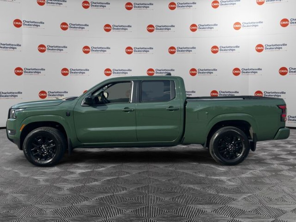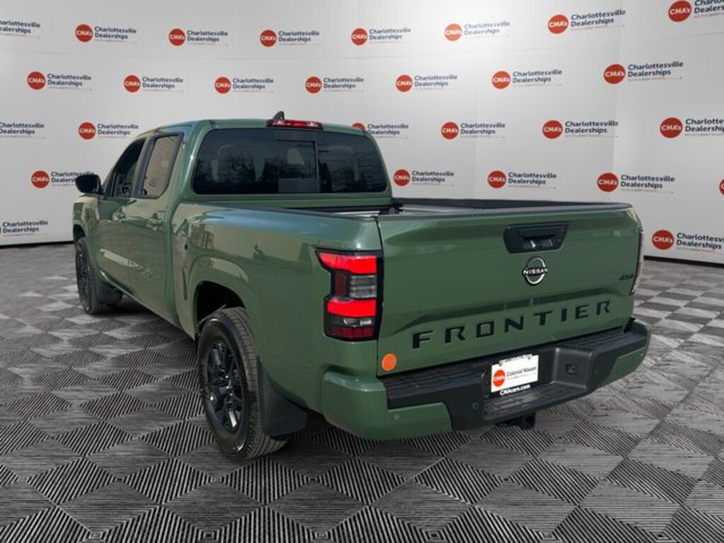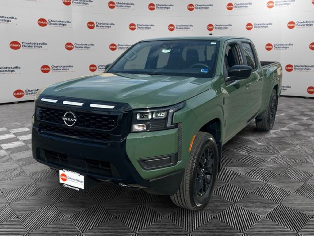 Tactical Green Metallic 2026 Nissan Frontier SV 4WD 9-Speed Automatic with Overdrive 3.8L DI DOHC 24V V6 4WD, 120V Power Outlet in Bed, 120V Power Outlet in Rear Center Console, 17" Alloy Wheels, 3.692 Axle Ratio, 4-Wheel Disc Brakes, 6 Speakers, ABS brakes, Air Conditioning, Alloy wheels, AM/FM radio: SiriusXM, Anti-whiplash front head restraints, Auto High-beam Headlights, Black Tailgate Logo Insert, Blind Spot Warning, Brake assist, Bumpers: body-color, Carpeted Floor Mats, Dark Armor Package, Dark FRONTIER Tailgate Lettering, Dark Grille Surround/Mesh/Inner Fascia, Dark Mirror Caps, Delay-off headlights, Driver door bin, Driver vanity mirror, Dual front impact airbags, Dual front side impact airbags, Electronic Stability Control, Electronic Tailgate Lock, Emergency communication system, Front anti-roll bar, Front Bucket Seats, Front Center Armrest, Front reading lights, Front wheel independent suspension, Fully automatic headlights, Grille Accent Lighting, Heated door mirrors, Heated Front Seats, Heated Leather Steering Wheel, Heated Outside Mirrors, HVAC Dual-Zone Front Auto a/C, I-Key with Request Switches on O/S Handles, Illuminated entry, Knee airbag, Locking Glove Box, Low tire pressure warning, Occupant sensing airbag, Overhead airbag, Overhead console, Panic alarm, Passenger door bin, Passenger vanity mirror, Power door mirrors, Power driver seat, Power steering, Power windows, Premium Cloth Seat Trim, Premium Paint, Radio data system, Radio: SiriusXM/AM/FM/Auxiliary/USB Audio System, Rear anti-roll bar, Rear seat center armrest, Rear side impact airbag, Rear step bumper, Remote Engine Starter, Remote keyless entry, Security system, Speed control, Speed-sensing steering, Splash Guards, Split folding rear seat, Spray-in Bedliner, Steering wheel mounted audio controls, SV Convenience Package, Tachometer, Telescoping steering wheel, Tilt steering wheel, Tow Package, Tow/Haul Mode Switch, Traction control, Trailer Hitch with Wiring Harness, Trip computer, Variably intermittent wipers, Voltmeter, Wheels: 17" Dark, Wireless Apple CarPlay/Wireless Android Auto, 4WD.