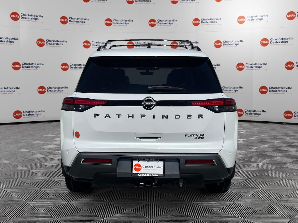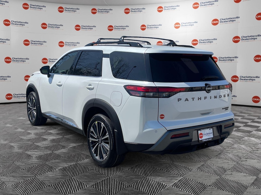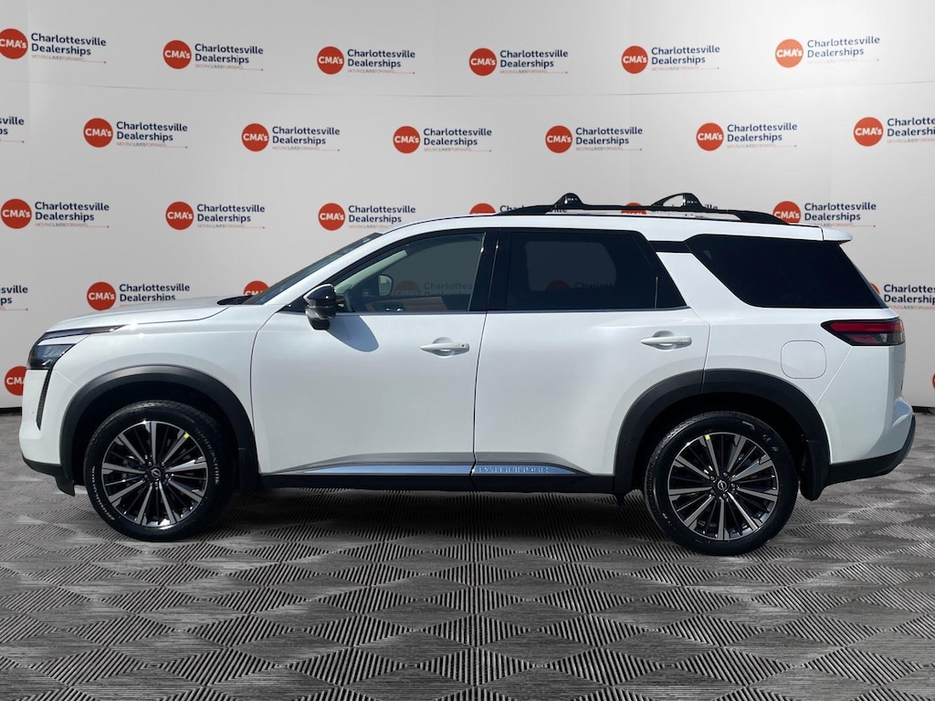 Everest White Pearl Tricoat 2026 Nissan Pathfinder Platinum 4WD 9-Speed Automatic 3.5L V6 DOHC 4WD, 13 Speakers, 2nd-Row Captain Chairs, 2nd-Row Removable Centre Console, 3rd row seats: bench, 4-Piece Black Splash Guards, 4-Wheel Disc Brakes, ABS brakes, Air Conditioning, Alloy wheels, AM/FM radio: SiriusXM w/360L, Auto High-beam Headlights, Auto tilt-away steering wheel, Auto-dimming Rear-View mirror, Automatic temperature control, Bodyside moldings, Bose Premium Audio System, Brake assist, Bumpers: body-color, Captain's Chairs Carpeted Floor Mats, Cargo Area Protector, Cargo Net, Cargo Package, Climate Controlled Front Bucket Seats, Cross Bars, Delay-off headlights, Driver door bin, Driver vanity mirror, Dual front impact airbags, Dual front side impact airbags, Electronic Stability Control, Emergency communication system: NissanConnect Services, First Aid, Four wheel independent suspension, Front anti-roll bar, Front Bucket Seats, Front Center Armrest, Front dual zone A/C, Front reading lights, Fully automatic headlights, Garage door transmitter: HomeLink, Heads-Up Display, Heated door mirrors, Heated front seats, Heated rear seats, Heated steering wheel, Illuminated entry, Knee airbag, Low tire pressure warning, Memory seat, Nissan USB Charging Cable Set, NissanConnect featuring Apple CarPlay and Android Auto, Occupant sensing airbag, Outside temperature display, Overhead airbag, Overhead console, Panic alarm, Passenger door bin, Passenger vanity mirror, Platinum Captain Chairs Package, Power door mirrors, Power driver seat, Power Liftgate, Power moonroof, Power passenger seat, Power steering, Power windows, Premium Paint, Radio data system, Radio: AM/FM Audio System with NissanConnect, Rain sensing wipers, Rear air conditioning, Rear anti-roll bar, Rear reading lights, Rear seat center armrest, Rear side impact airbag, Rear window defroster, Rear window wiper, Reclining 3rd row seat, Remote keyless entry, Security system, Semi-Aniline Leather-Appointed Seating Surfaces, Speed control, Speed-sensing steering, Speed-Sensitive Wipers, Split folding rear seat, Spoiler, Steering wheel memory, Steering wheel mounted audio controls, Tachometer, Telescoping steering wheel, Tilt steering wheel, Traction control, Trip computer, Turn signal indicator mirrors, Variably intermittent wipers, Ventilated front seats, Wheels: 20 Machined Alloy, 4WD.