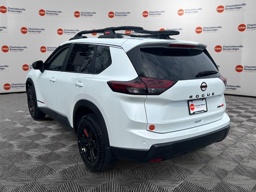 Everest White Pearl Tricoat 2026 Nissan Rogue Rock Creek AWD CVT with Xtronic 1.5L DOHC AWD, 4-Wheel Disc Brakes, 6 Speakers, ABS brakes, Air Conditioning, Alloy wheels, AM/FM radio, Apple CarPlay/Android Auto, Auto High-beam Headlights, Automatic temperature control, Black Splash Guards (set of 4), Brake assist, Delay-off headlights, Driver door bin, Driver vanity mirror, Dual front impact airbags, Dual front side impact airbags, Electronic Stability Control, Emergency communication system: NissanConnect Services, Four wheel independent suspension, Frameless Rearview Mirror with Universal Remote, Front anti-roll bar, Front Bucket Seats, Front Center Armrest, Front dual zone A/C, Front reading lights, Fully automatic headlights, Heated door mirrors, Heated Front Bucket Seats, Heated front seats, Illuminated entry, Knee airbag, Leatherette and Ballistic Nylon Seating, Low tire pressure warning, Occupant sensing airbag, Outside temperature display, Overhead airbag, Overhead console, Panic alarm, Passenger door bin, Passenger vanity mirror, Power door mirrors, Power driver seat, Power Liftgate, Power steering, Power windows, Premium Paint, Radio data system, Radio: AM/FM NissanConnect, Rear anti-roll bar, Rear Parking Sensors, Rear seat center armrest, Rear side impact airbag, Rear window defroster, Rear window wiper, Remote keyless entry, Retractable Cargo Cover, Roof rack, Speed control, Speed-sensing steering, Speed-Sensitive Wipers, Split folding rear seat, Spoiler, Steering wheel mounted audio controls, Tachometer, Telescoping steering wheel, Tilt steering wheel, Traction control, Trip computer, USB Charging Cable Set, Variably intermittent wipers, Wheels: 17 Dark Painted Alloy, AWD.Recent Arrival! 27/32 City/Highway MPG