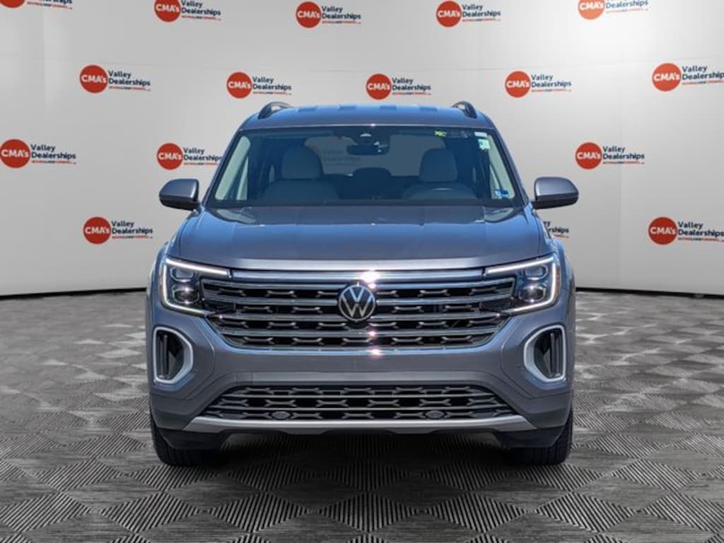 *VOLKSWAGEN CERTIFIED*, *BACKUP CAMERA*, *BLUETOOTH*, *HEATED SEATS*, *INCLUDES WARRANTY*, *RECENT TRADE IN*, *LOCAL TRADE*, *CLEAN AUTOCHECK*, *MOONROOF / SUNROOF*, *KEYLESS START*, Atlas 2.0T SE, Volkswagen Certified Pre-Owned Certified, 4D Sport Utility, 2.0L TSI, 8-Speed Automatic with Tiptronic, AWD, Platinum Gray Metallic, Shetland Beige Premium Synthetic, 3.60 Axle Ratio, 3rd row seats: split-bench, 4-Wheel Disc Brakes, 6 Speakers, ABS brakes, Air Conditioning, Alloy wheels, AM/FM radio: SiriusXM with 360L, Auto-dimming Rear-View mirror, Automatic temperature control, Brake assist, Bumpers: body-color, Compass, Delay-off headlights, Driver door bin, Driver vanity mirror, Dual front impact airbags, Dual front side impact airbags, Electronic Stability Control, Emergency communication system: VW Car-Net Safe & Secure 5-year, Exterior Parking Camera Rear, Four wheel independent suspension, Front anti-roll bar, Front Bucket Seats, Front Center Armrest, Front dual zone A/C, Front fog lights, Front reading lights, Fully automatic headlights, Heated door mirrors, Heated front seats, Heated steering wheel, Heated/Actively Ventilated Front Bucket Seats, Heavy Duty Trunk Liner w/VW CarGo Blocks, Illuminated entry, Low tire pressure warning, Occupant sensing airbag, Outside temperature display, Overhead airbag, Overhead console, Panic alarm, Passenger door bin, Passenger vanity mirror, Perforated V-Tex Leatherette Seating Surfaces, Power door mirrors, Power driver seat, Power steering, Power windows, Radio data system, Radio: MIB3 Composition Media, Rain sensing wipers, Rear air conditioning, Rear anti-roll bar, Rear reading lights, Rear seat center armrest, Rear window defroster, Rear window wiper, Remote keyless entry, Rubber Mats - Bench Seat (DISC), Rubber Mats Kit - Bench Seats (DISC), Security system, Speed control, Speed-sensing steering, Split folding rear seat, Spoiler, Standard Suspension, Steering wheel mounted audio controls, Tachometer, Telescoping steering wheel, Tilt steering wheel, Traction control, Trip computer, Turn signal indicator mirrors, Variably intermittent wipers, Ventilated front seats, Wheels: 18" 2-Tone Machined Alloy, Atlas 2.0T SE, 4D Sport Utility, 2.0L TSI, 8-Speed Automatic with Tiptronic, AWD, Platinum Gray Metallic, Shetland Beige Premium Synthetic.